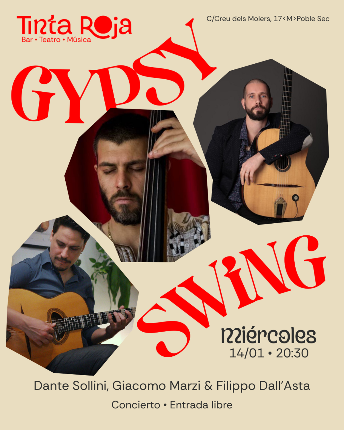 Concierto con Tapeo: El Miércoles es el día del Swing Manouche (o Gypsy jazz) en el Tinta Roja.
